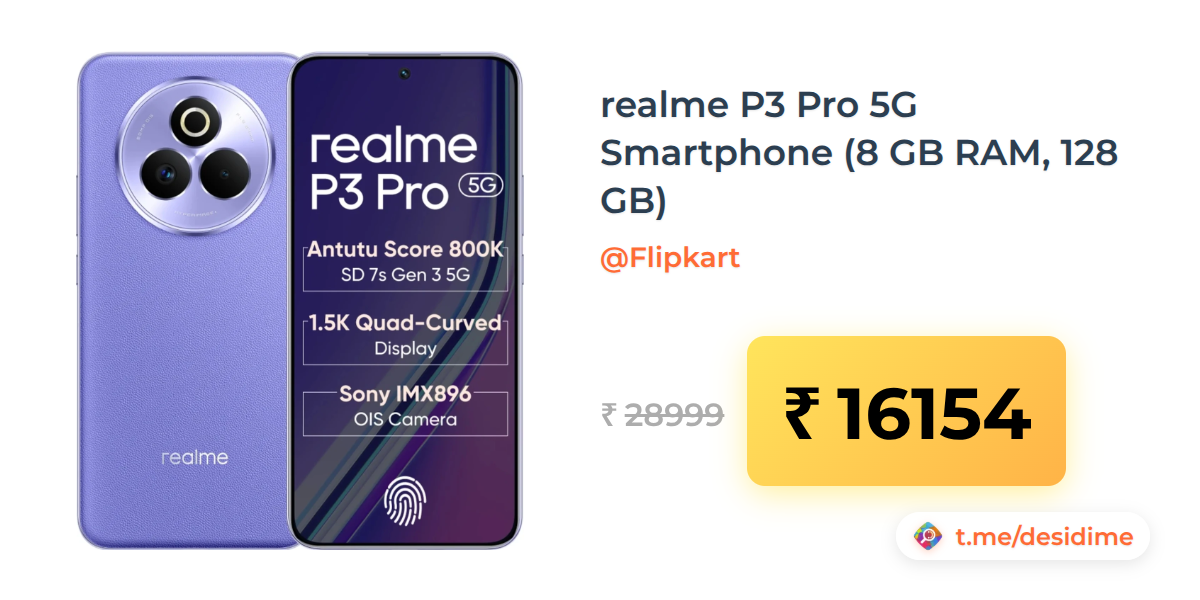 44% off on - realme P3 Pro 5G Smartphone (8 GB RAM, 128 GB) - Rs. 16154