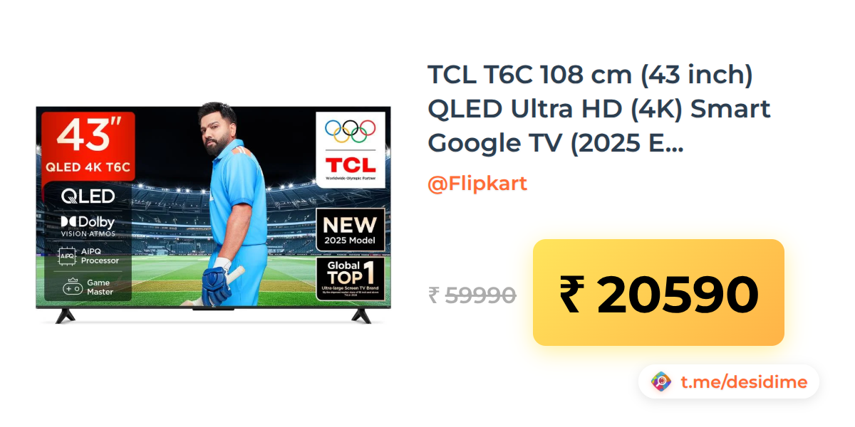 66% off on - TCL T6C 108 cm (43 inch) QLED Ultra HD (4K) Smart Google TV (2025 Edition) - Rs. 20590