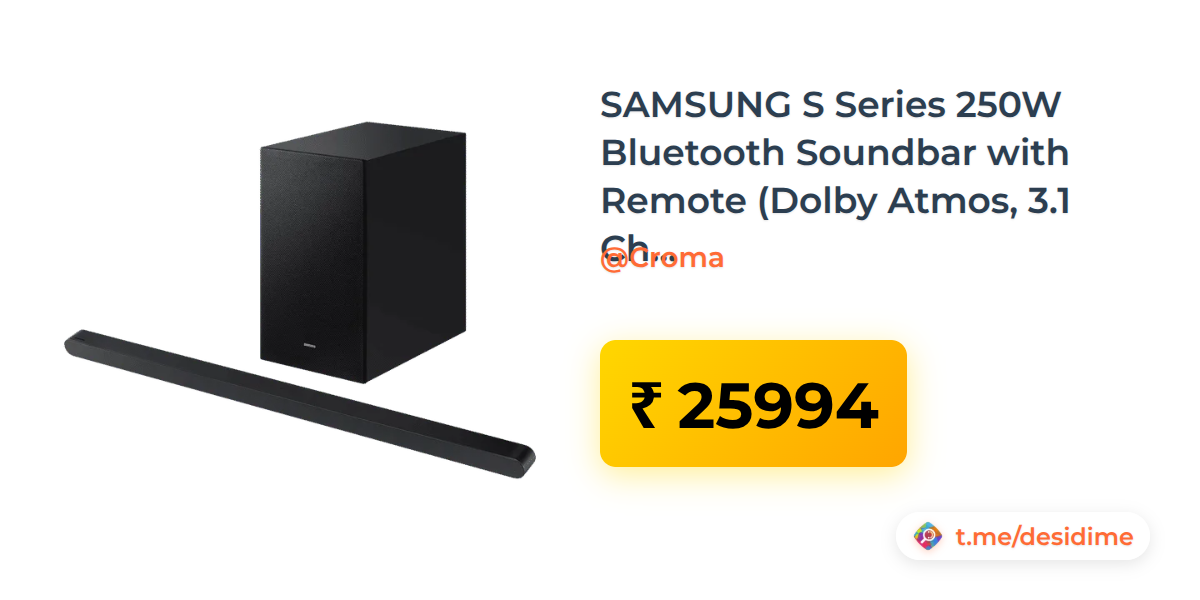 51% off on - SAMSUNG S Series 250W Bluetooth Soundbar with Remote (Dolby Atmos, 3.1 Channel, Black) - Rs. 25994