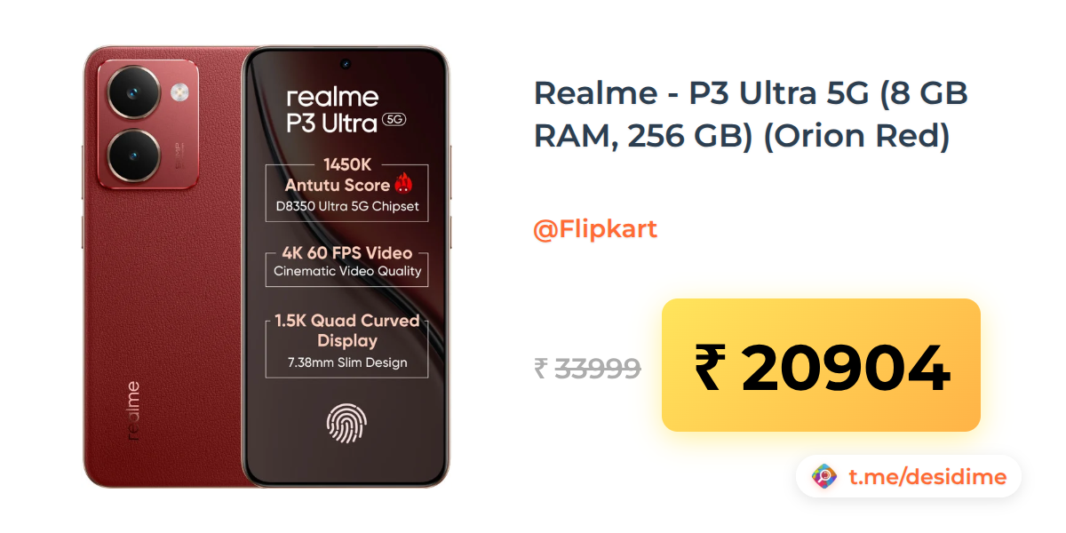 39% off on - Realme - P3 Ultra 5G (8 GB RAM, 256 GB) (Orion Red) - Rs. 20904