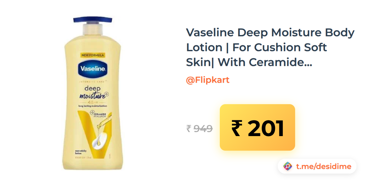 79% off on - Vaseline Deep Moisture Body Lotion | For Cushion Soft Skin| With Ceramides Hyaluron (725 ml) - Rs. 201