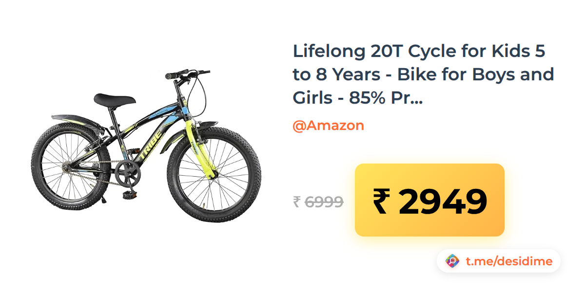 58% off on - Lifelong 20T Cycle for Kids 5 to 8 Years - Bike for Boys and Girls - 85% Pre-Assembled - Unisex Cycle (Tribe, Yellow & Black) - Rs. 2949