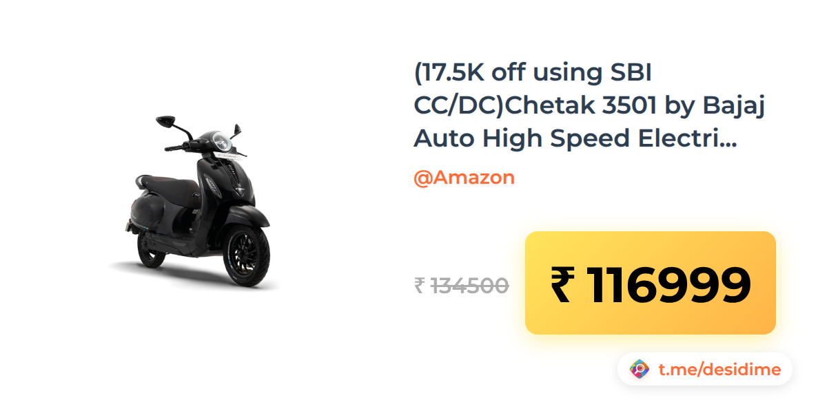 13% off on - (17.5K off using SBI CC/DC)Chetak 3501 by Bajaj Auto High Speed Electric Scooter with charger - Brooklyn Black - Ex-Showroom - Rs. 116999