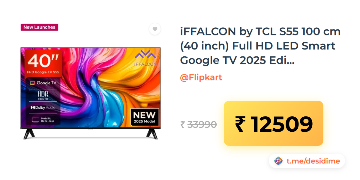 63% off on - iFFALCON by TCL S55 100 cm (40 inch) Full HD LED Smart Google TV 2025 Edition with HDR 10 | 20W Dolby Audio - Rs. 12509