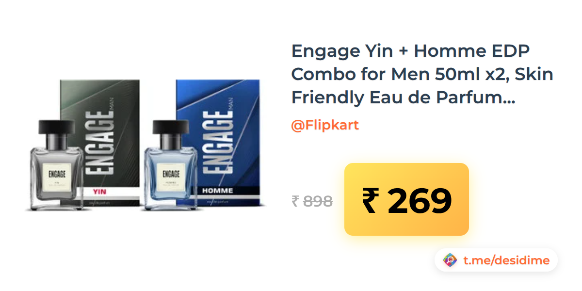 70% off on - Engage Yin + Homme EDP Combo for Men 50ml x2, Skin Friendly Eau de Parfum Eau de Parfum - 100 ml (For Men) - Rs. 269
