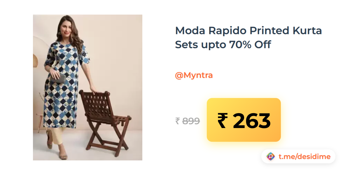71% off on - Moda Rapido Printed Kurta Sets upto 70% Off - Rs. 263