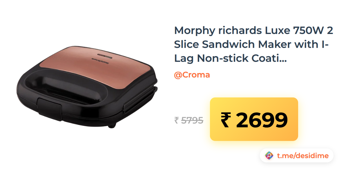 53% off on - Morphy richards Luxe 750W 2 Slice Sandwich Maker with I-Lag Non-stick Coating (Rose Gold) - Rs. 2699
