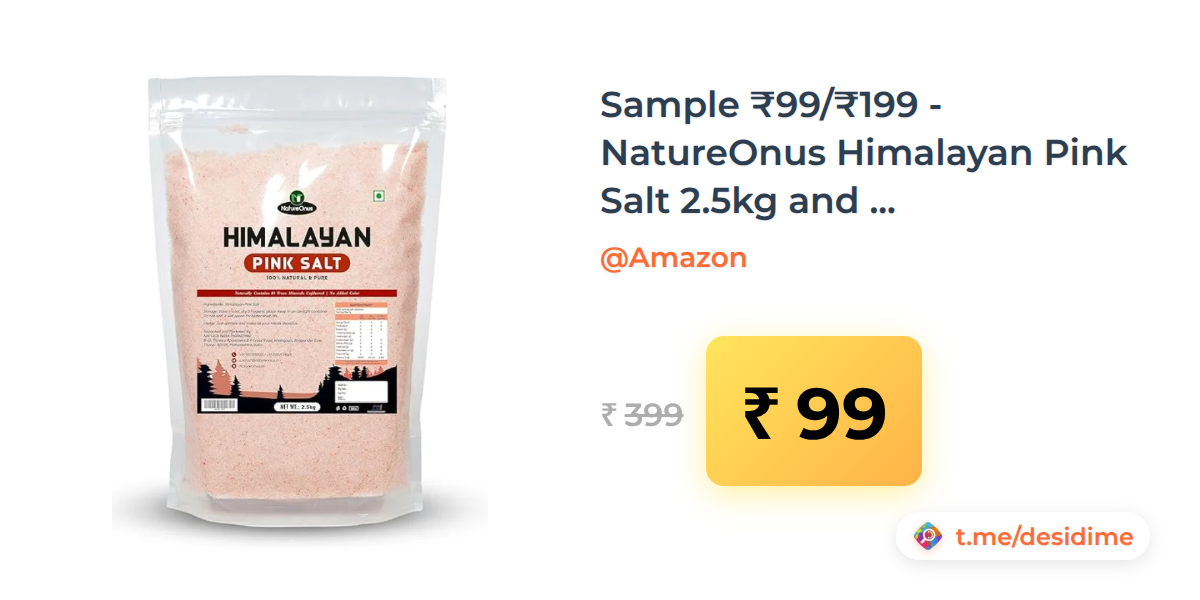 75% off on - Sample ₹99/₹199 - NatureOnus Himalayan Pink Salt 2.5kg and many more [user specific] - Rs. 99