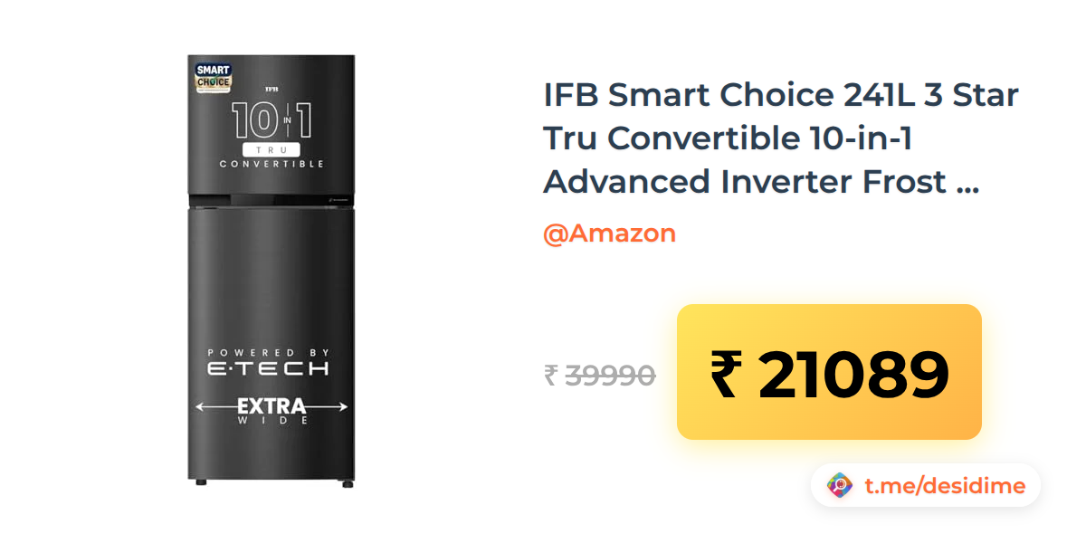 47% off on - IFB Smart Choice 241L 3 Star Tru Convertible 10-in-1 Advanced Inverter Frost Free Double Door Refrigerator - Rs. 21089