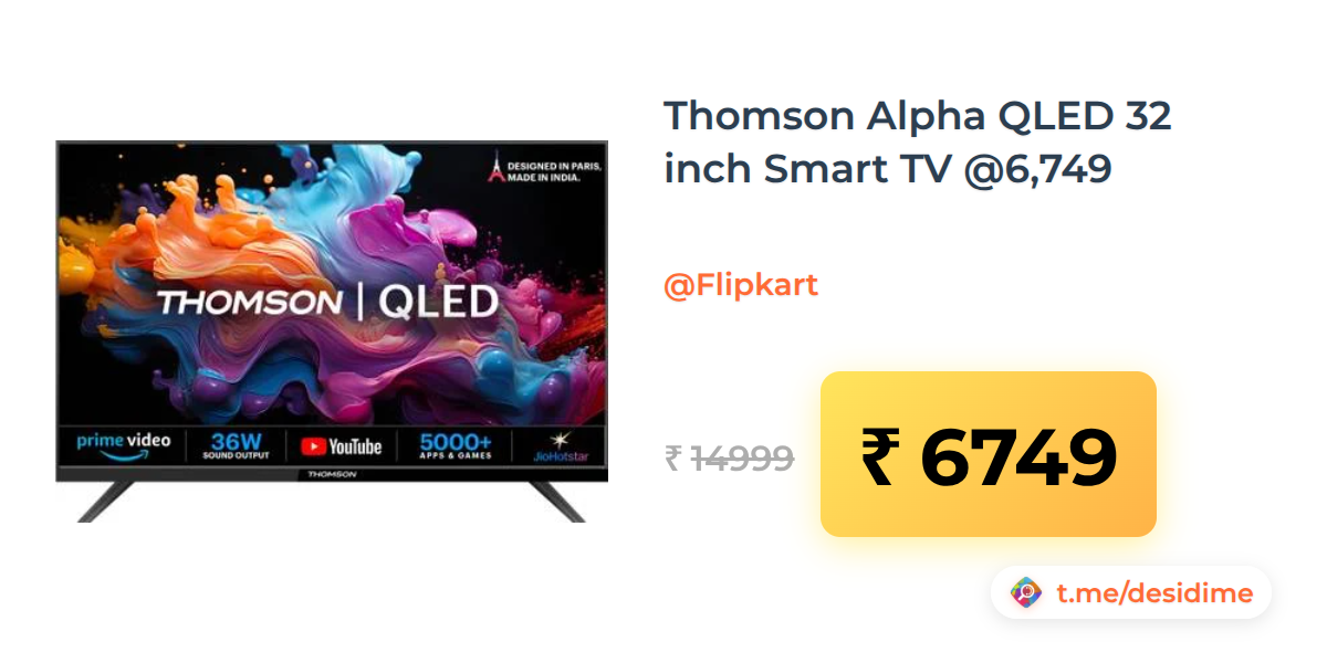 55% off on - Thomson Alpha QLED 32 inch Smart TV @6,749 - Rs. 6749