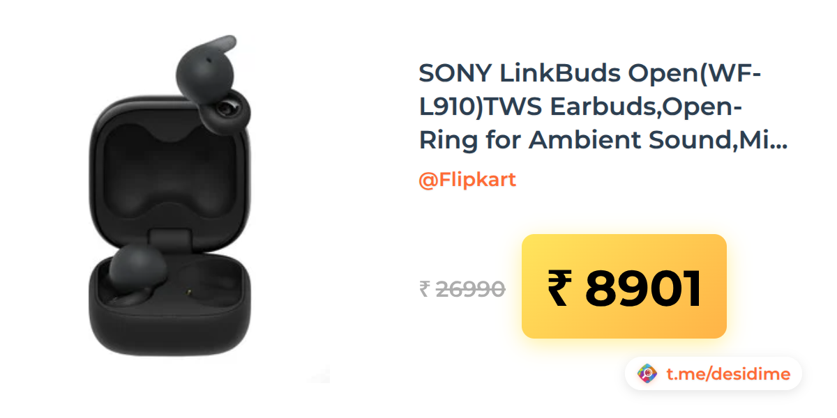 67% off on - SONY LinkBuds Open(WF-L910)TWS Earbuds,Open-Ring for Ambient Sound,Mic,22Hrs Battery Bluetooth (Black, True Wireless) - Rs. 8901