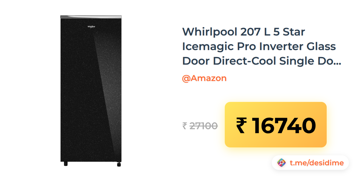 38% off on - Whirlpool 207 L 5 Star Icemagic Pro Inverter Glass Door Direct-Cool Single Door Refrigerator - Rs. 16740