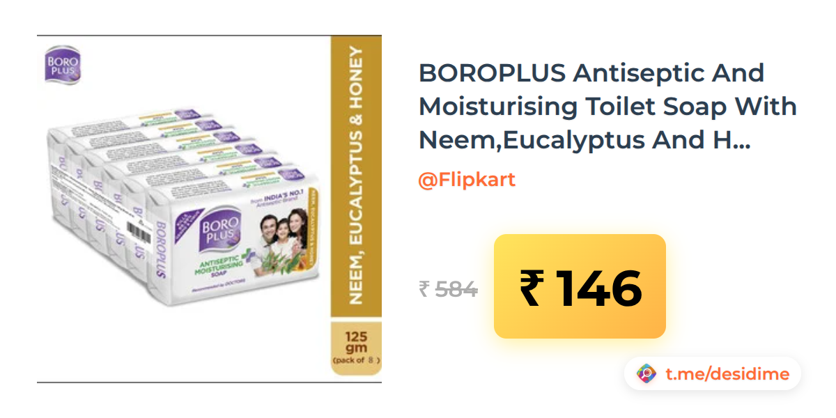 75% off on - BOROPLUS Antiseptic And Moisturising Toilet Soap With Neem,Eucalyptus And Honey| 125GEach (8 x 125 g) - Rs. 146