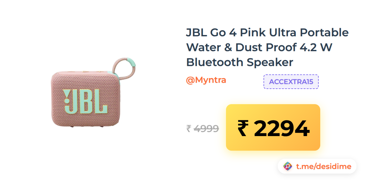 54% off on - JBL Go 4 Pink Ultra Portable Water & Dust Proof 4.2 W Bluetooth Speaker - Rs. 2294