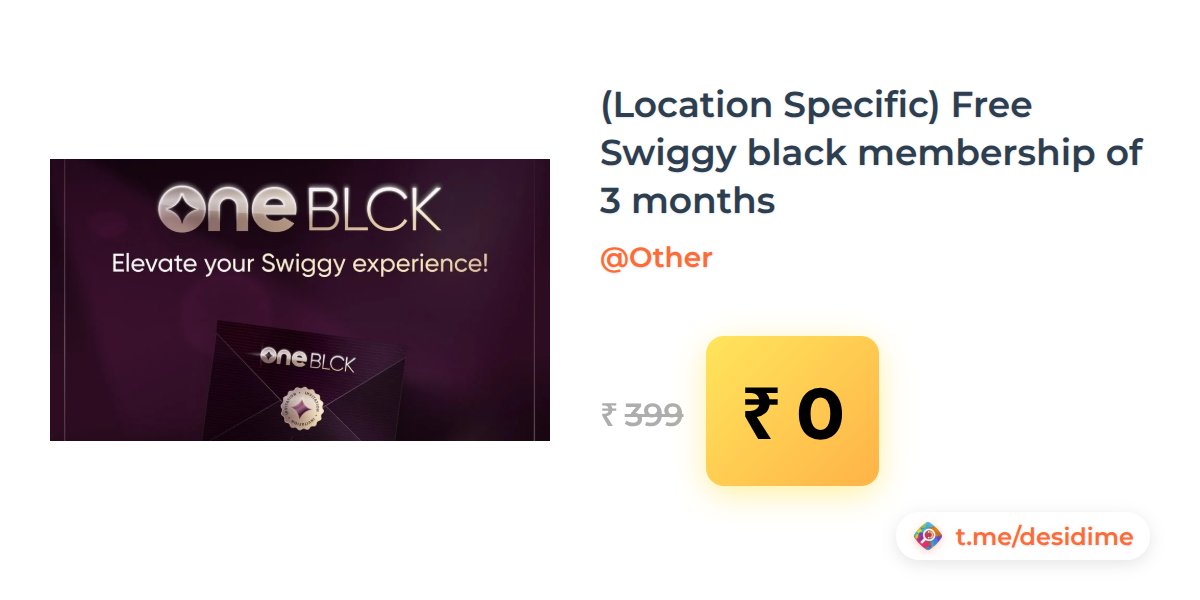 100% off on - (Location Specific) Free Swiggy black membership of 3 months - Rs. 0