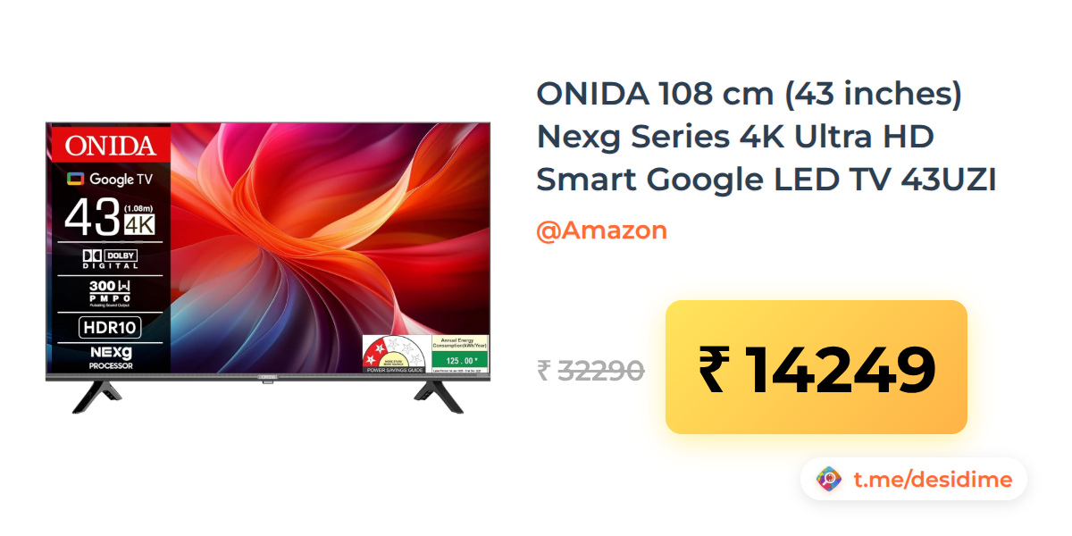 56% off on - ONIDA 108 cm (43 inches) Nexg Series 4K Ultra HD Smart Google LED TV 43UZI - Rs. 14249