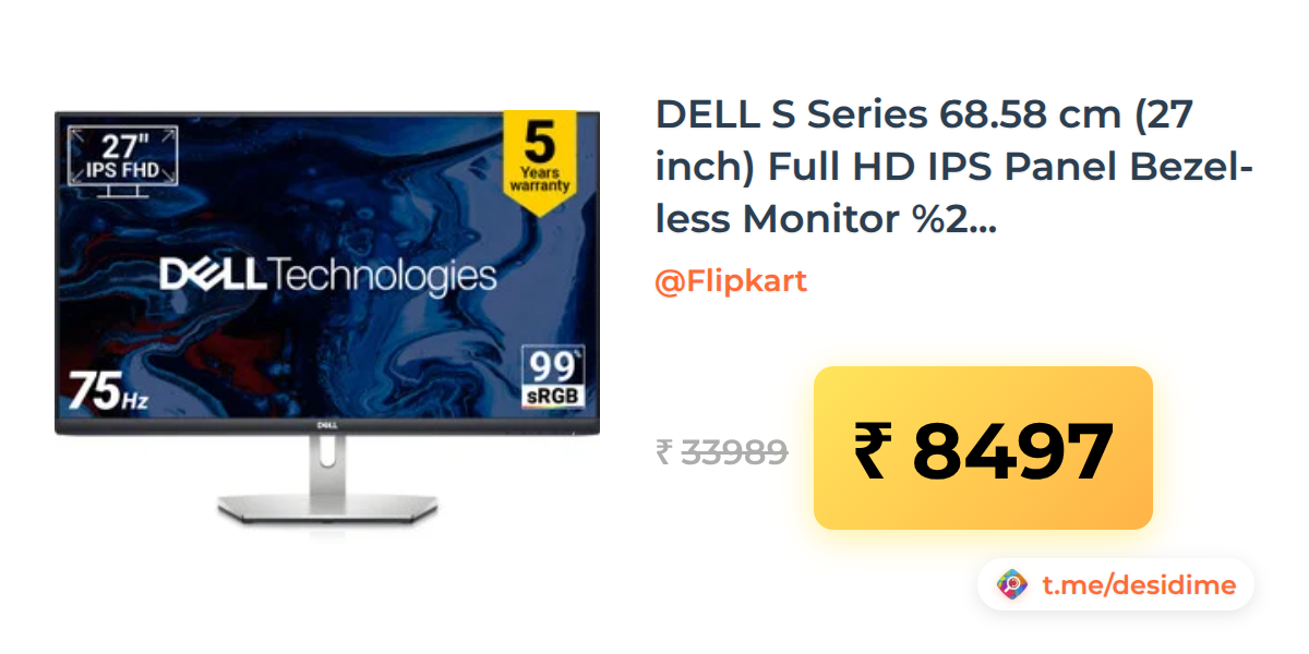 75% off on - DELL S Series 68.58 cm (27 inch) Full HD IPS Panel Bezel-less Monitor (S2721HNM / S2721HN)   - Rs. 8497