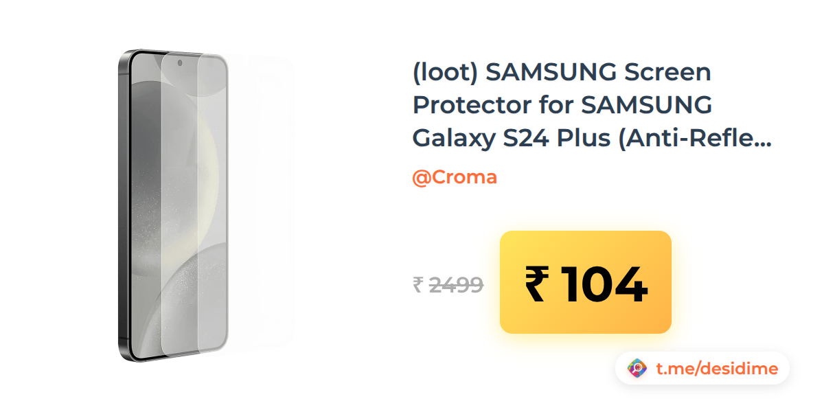 96% off on - (loot) SAMSUNG Screen Protector for SAMSUNG Galaxy S24 Plus (Anti-Reflecting) - Rs. 104