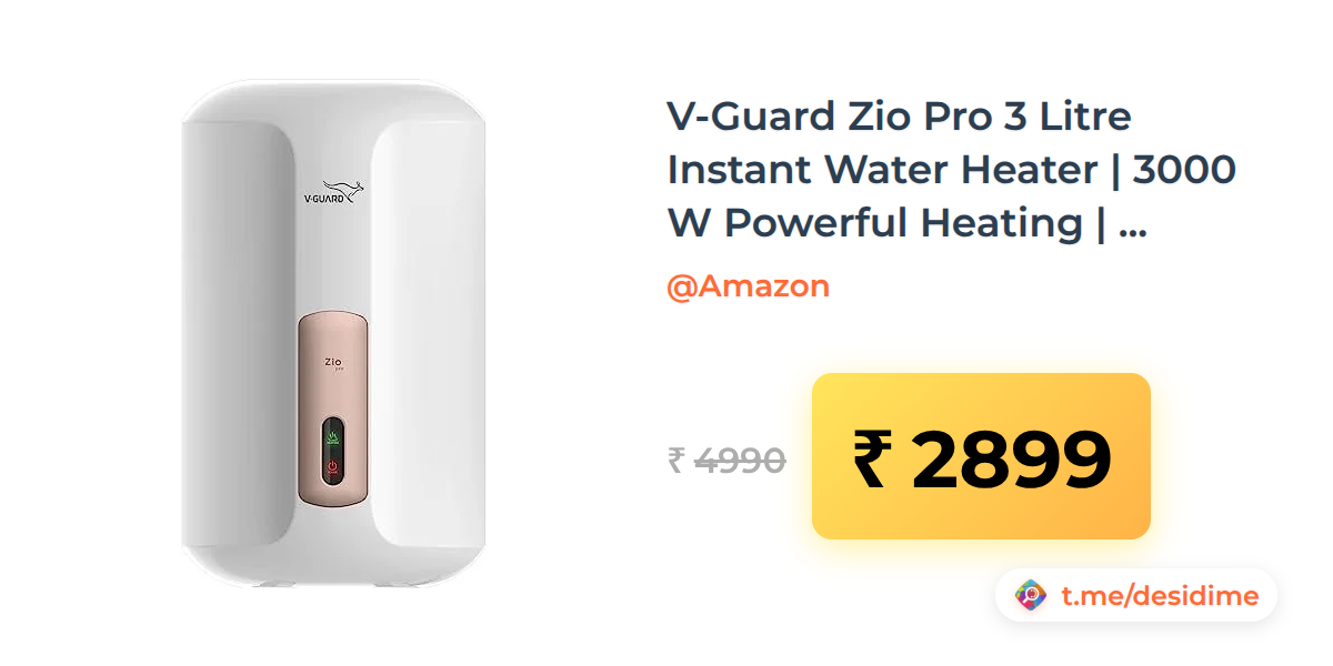 42% off on - V-Guard Zio Pro 3 Litre Instant Water Heater | 3000 W Powerful Heating | White-Metallic Rose Gold - Rs. 2899