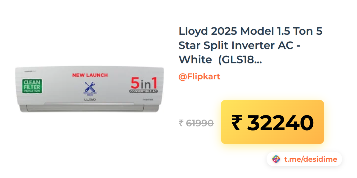 48% off on - Lloyd 2025 Model 1.5 Ton 5 Star Split Inverter AC - White (GLS18I5KWGGW, Copper Condenser) - Rs. 32240
