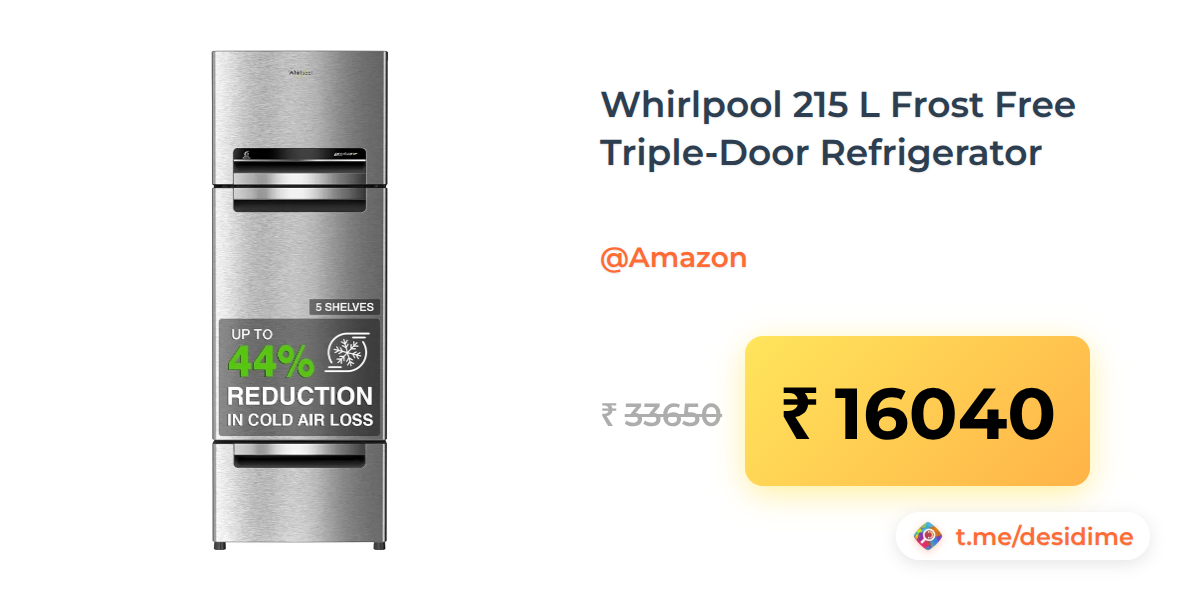 52% off on - Whirlpool 215 L Frost Free Triple-Door Refrigerator - Rs. 16040