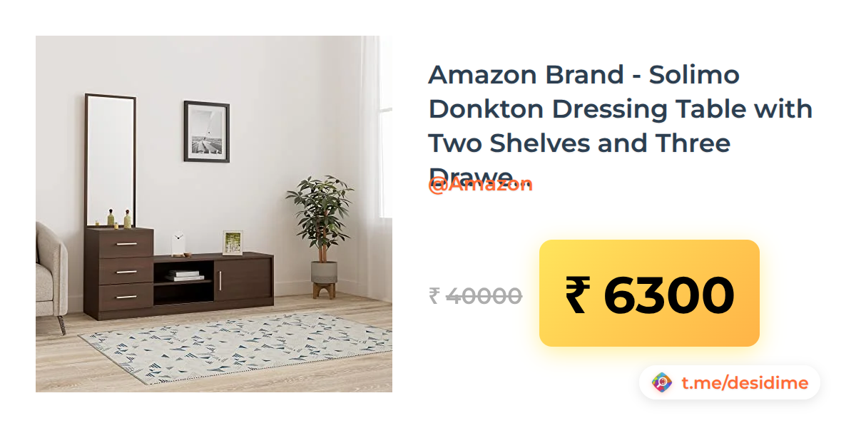 84% off on - Amazon Brand - Solimo Donkton Dressing Table with Two Shelves and Three Drawers (Engineered Wood, Acacia Dark) - Rs. 6300