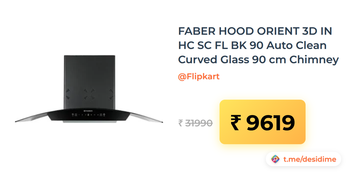 70% off on - FABER HOOD ORIENT 3D IN HC SC FL BK 90 Auto Clean Curved Glass 90 cm Chimney - Rs. 9619