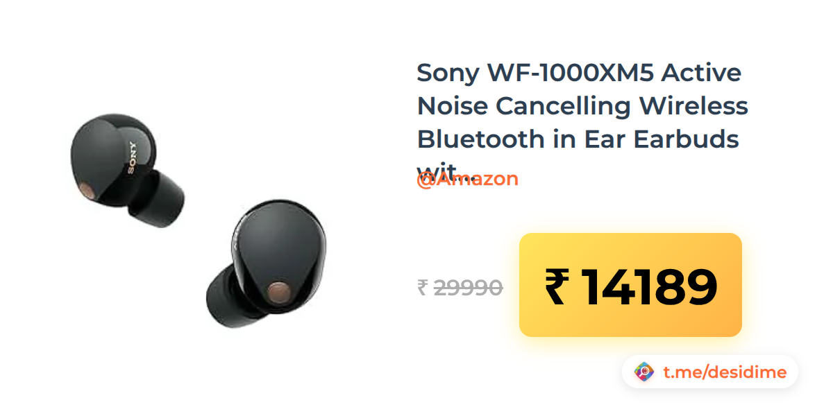 53% off on - Sony WF-1000XM5 Active Noise Cancelling Wireless Bluetooth in Ear Earbuds with Mic, Up to 36 Hours Battery Life - Black - Rs. 14189