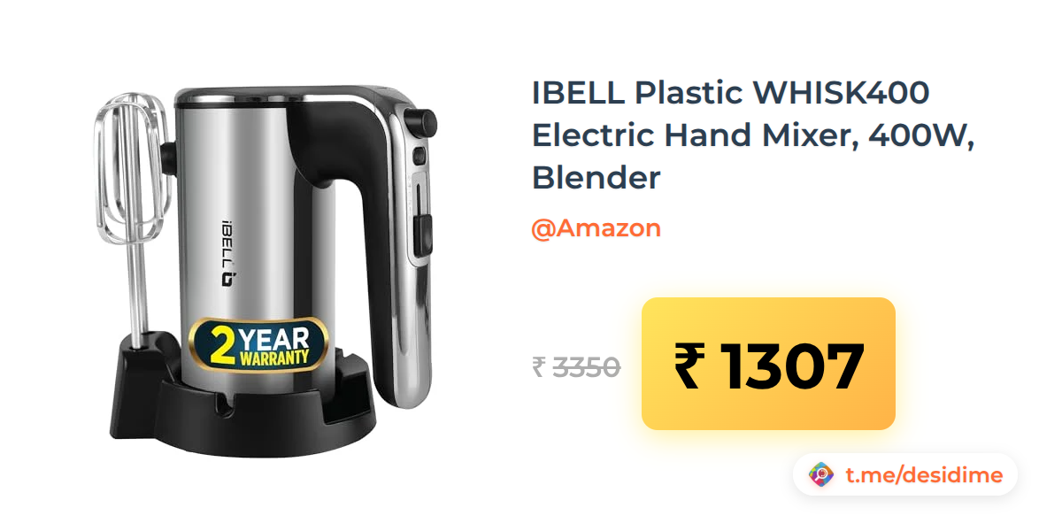61% off on - IBELL Plastic WHISK400 Electric Hand Mixer, 400W, Blender - Rs. 1307