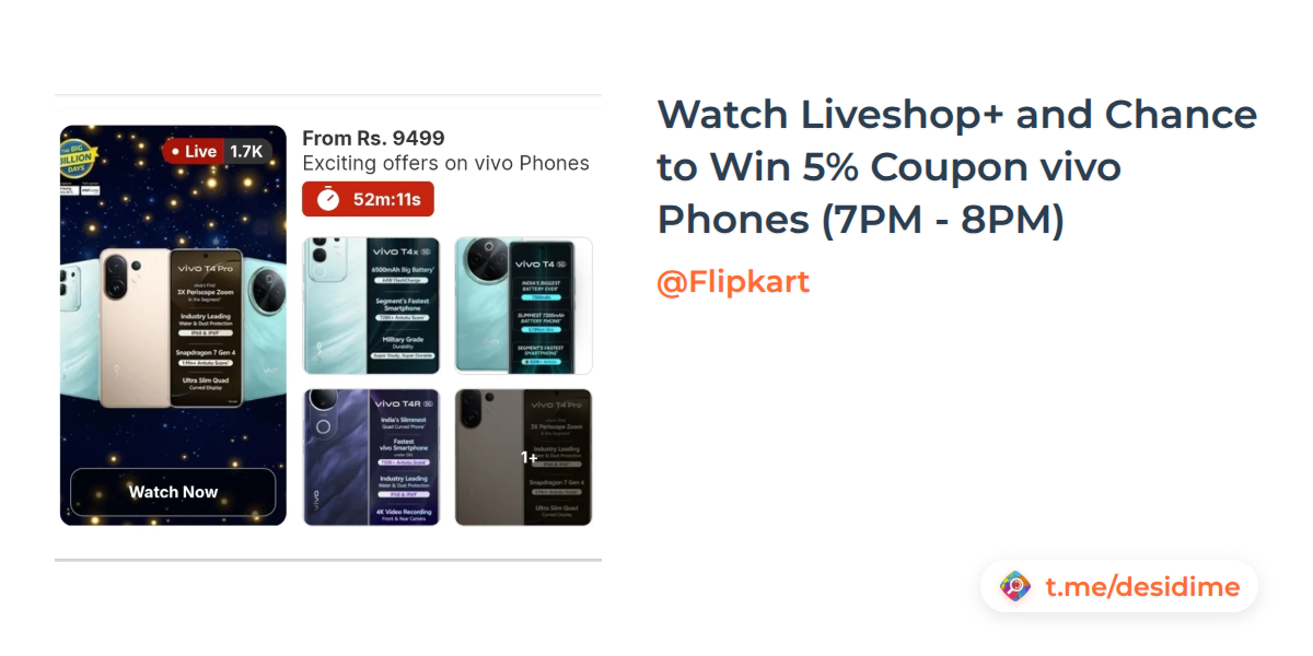 Watch Liveshop+ and Chance to Win 5% Coupon vivo Phones (7PM - 8PM)