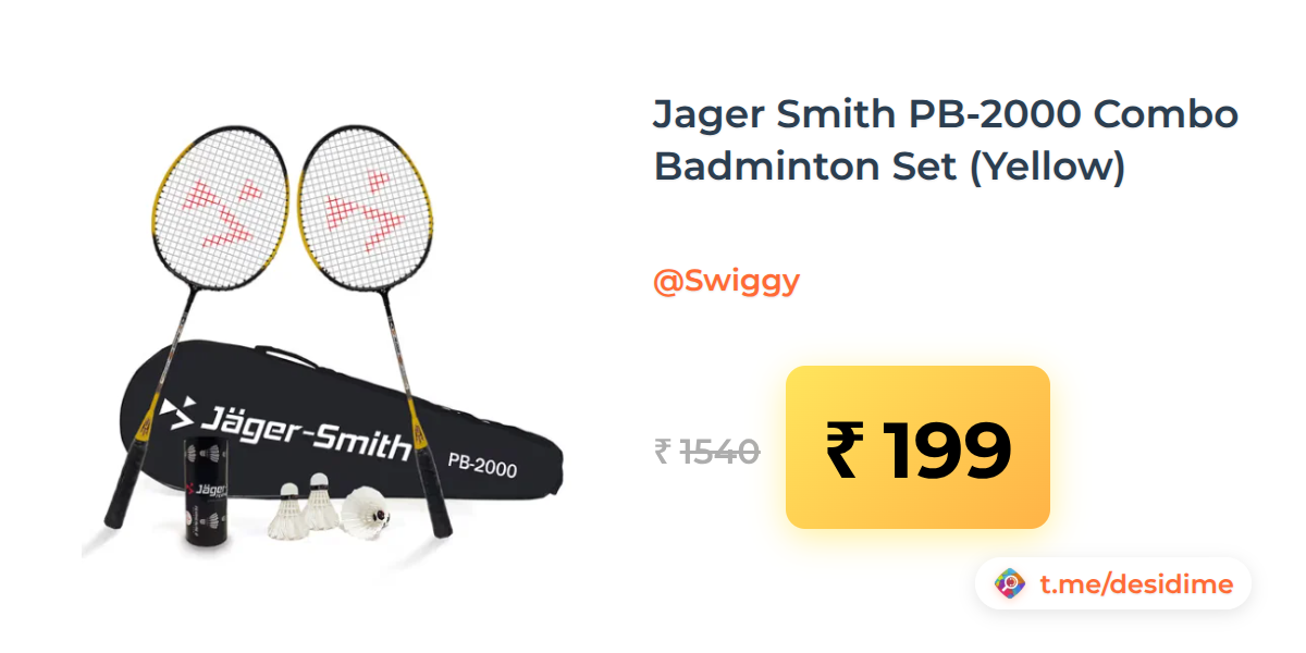 87% off on - Jager Smith PB-2000 Combo Badminton Set (Yellow) - Rs. 199