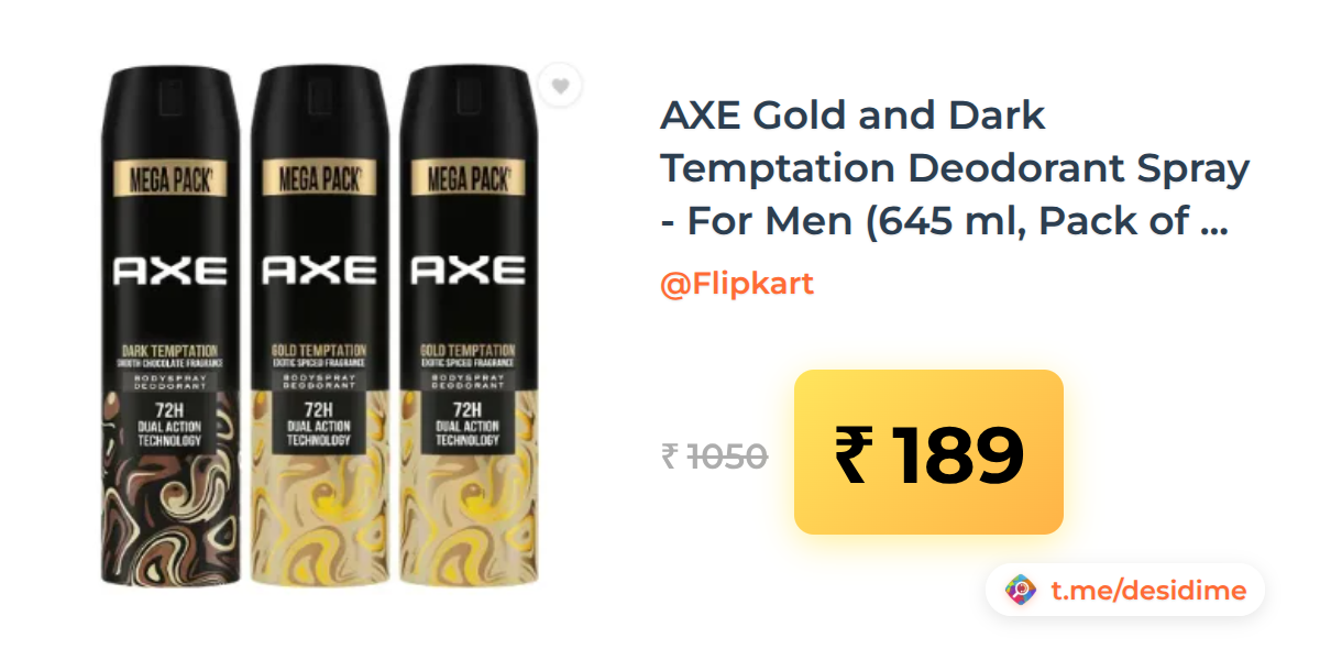 82% off on - AXE Gold and Dark Temptation Deodorant Spray - For Men (645 ml, Pack of 3) - Rs. 189