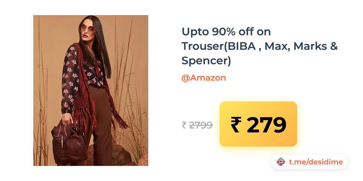 90% off on - Upto 90% off on Trouser(BIBA , Max, Marks & Spencer) - Rs. 279