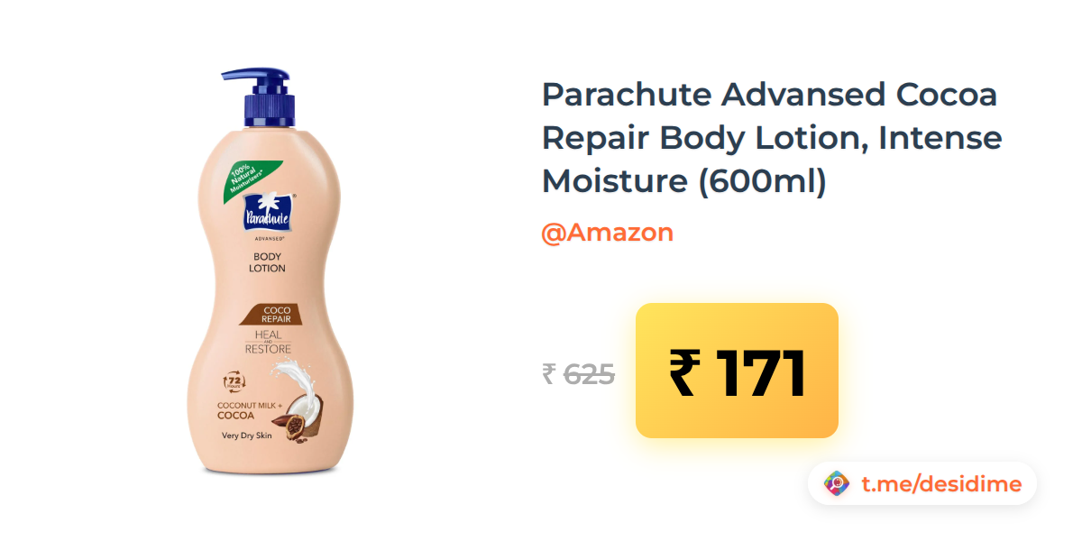 73% off on - Parachute Advansed Cocoa Repair Body Lotion, Intense Moisture (600ml) - Rs. 171