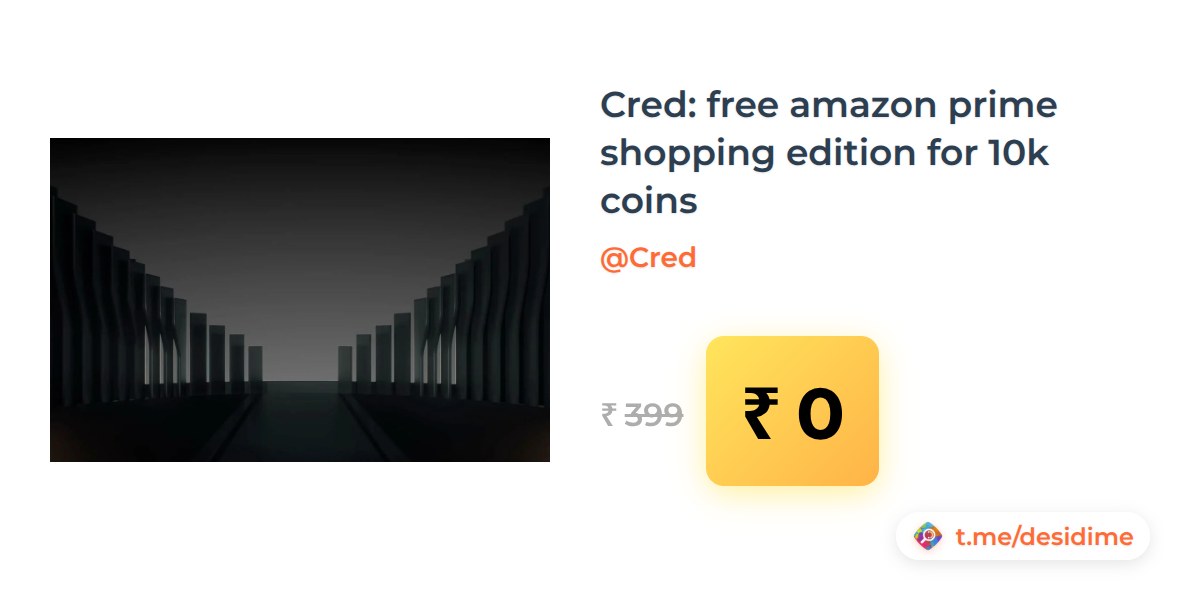 100% off on - Cred: free amazon prime shopping edition for 10k coins - Rs. 0