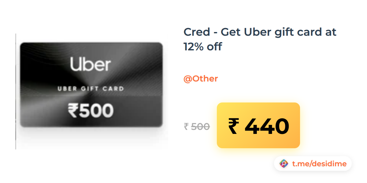 12% off on - Cred - Get Uber gift card at 12% off - Rs. 440