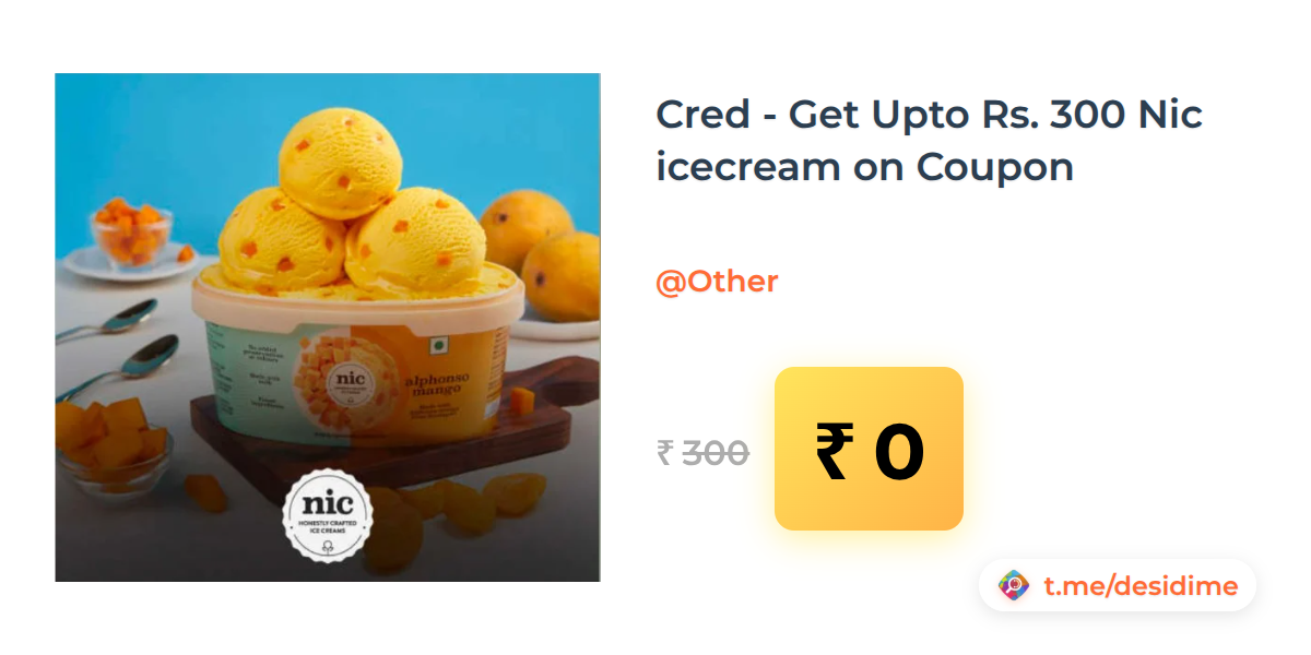 100% off on - Cred - Get Upto Rs. 300 Nic icecream on Coupon - Rs. 0