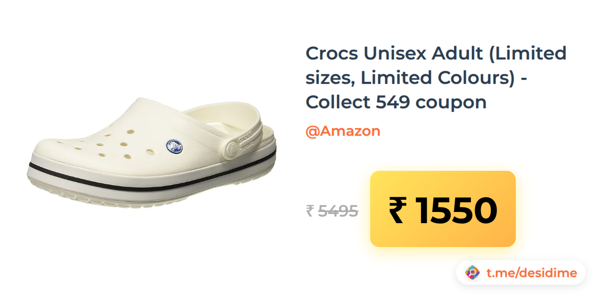72% off on - Crocs Unisex Adult (Limited sizes, Limited Colours) - Collect 549 coupon - Rs. 1550