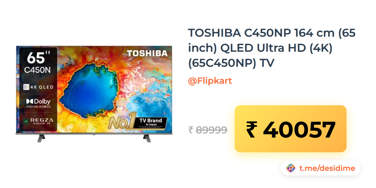 55% off on - TOSHIBA C450NP 164 cm (65 inch) QLED Ultra HD (4K) (65C450NP) TV - Rs. 40057