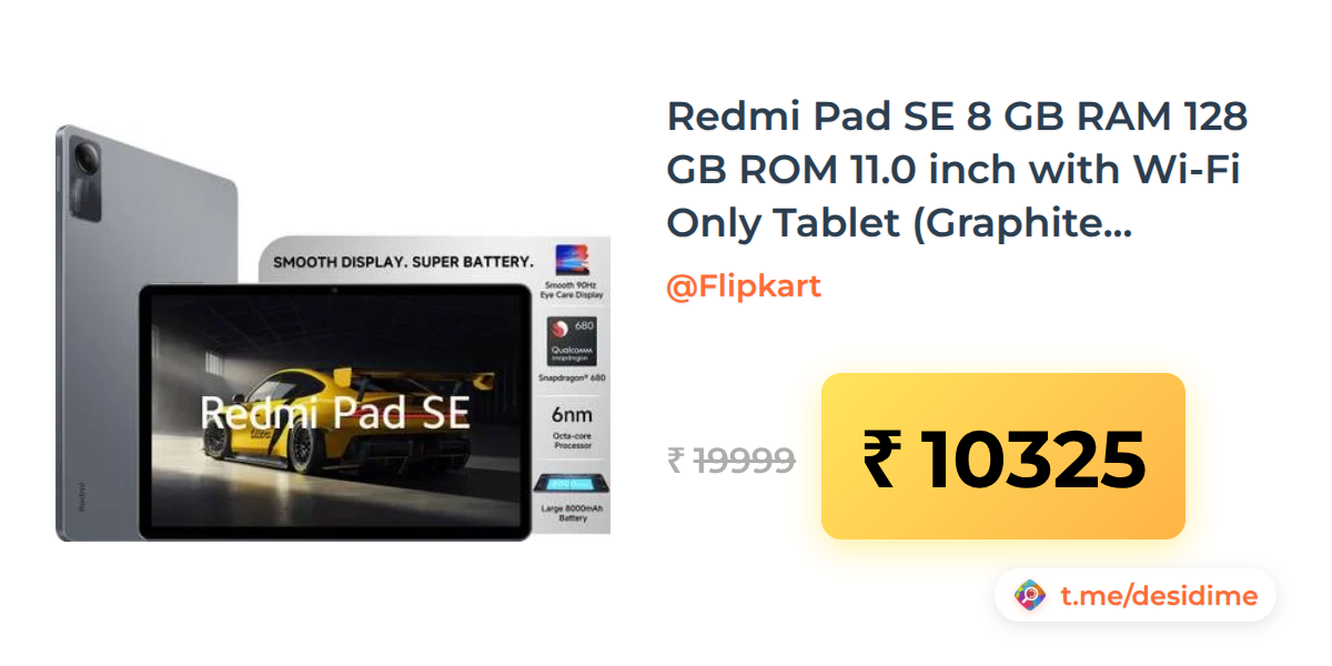 48% off on - Redmi Pad SE 8 GB RAM 128 GB ROM 11.0 inch with Wi-Fi Only Tablet (Graphite Gray) - Rs. 10325