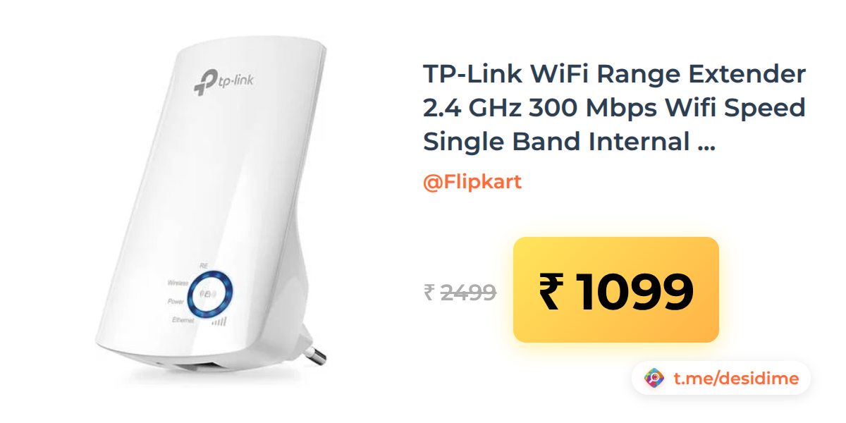 56% off on - TP-Link WiFi Range Extender 2.4 GHz 300 Mbps Wifi Speed Single Band Internal Antenna Ethernet - Rs. 1099