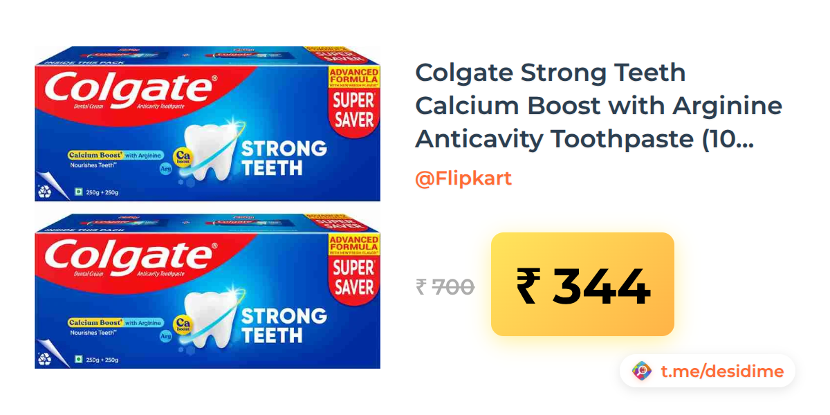51% off on - Colgate Strong Teeth Calcium Boost with Arginine Anticavity Toothpaste (1000 g, Pack of 2) - Rs. 344