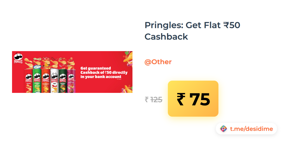 40% off on - Pringles: Get Flat ₹50 Cashback - Rs. 75