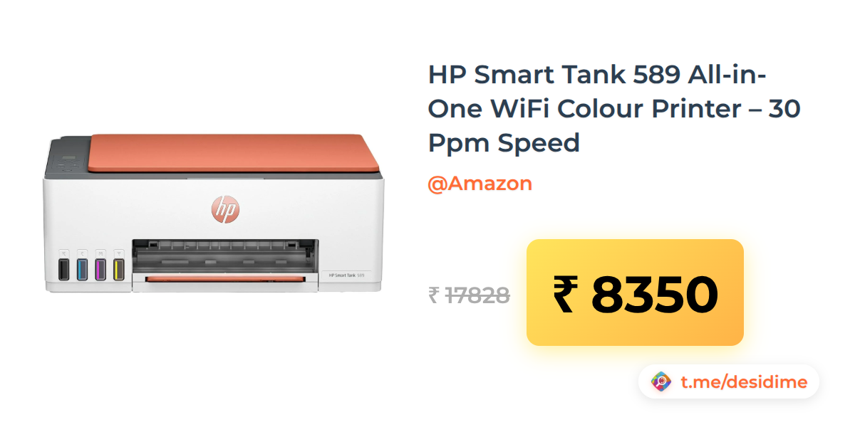 53% off on - HP Smart Tank 589 All-in-One WiFi Colour Printer – 30 Ppm Speed - Rs. 8350