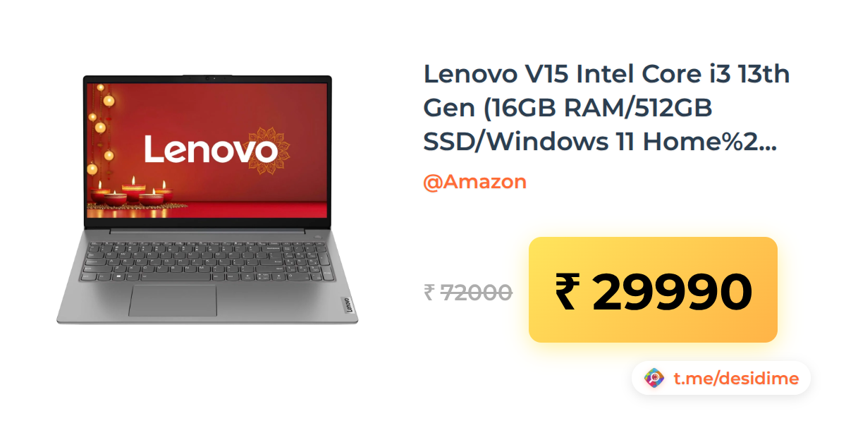 58% off on - Lenovo V15 Intel Core i3 13th Gen (16GB RAM/512GB SSD/Windows 11 Home/Office - Rs. 29990