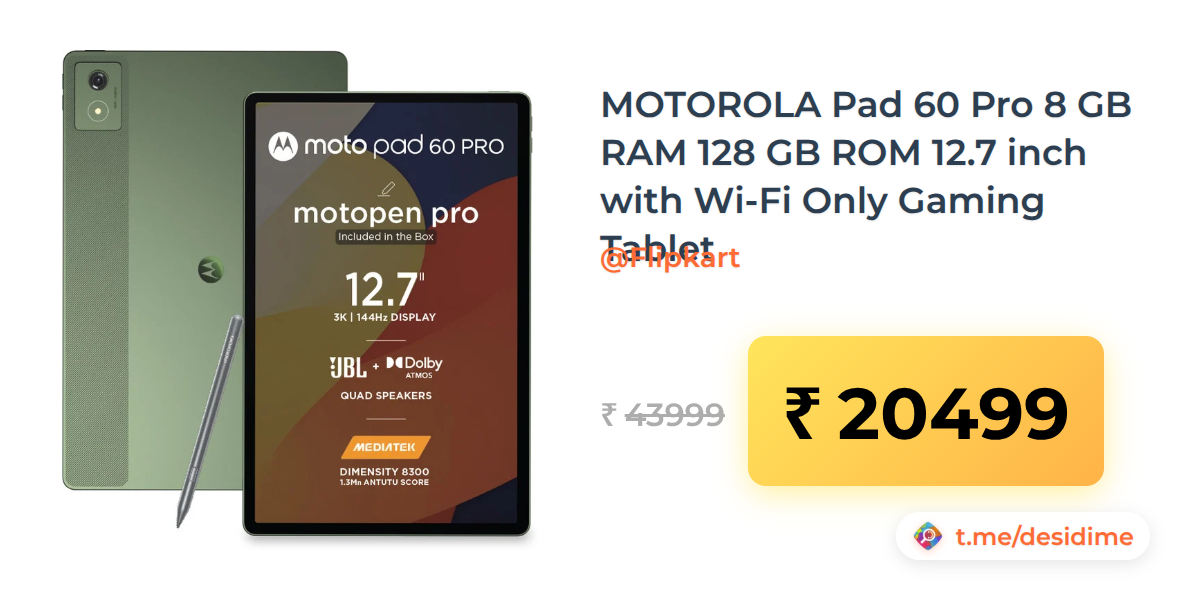53% off on - MOTOROLA Pad 60 Pro 8 GB RAM 128 GB ROM 12.7 inch with Wi-Fi Only Gaming Tablet - Rs. 20499