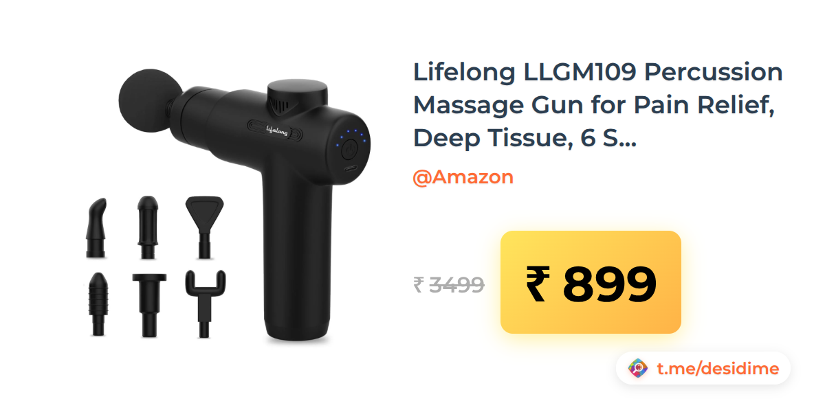 74% off on - Lifelong LLGM109 Percussion Massage Gun for Pain Relief, Deep Tissue, 6 Speeds & 7 Massage Heads - Rs. 899