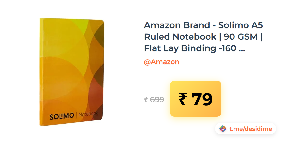 89% off on - Amazon Brand - Solimo A5 Ruled Notebook | 90 GSM | Flat Lay Binding -160 pages - Rs. 79