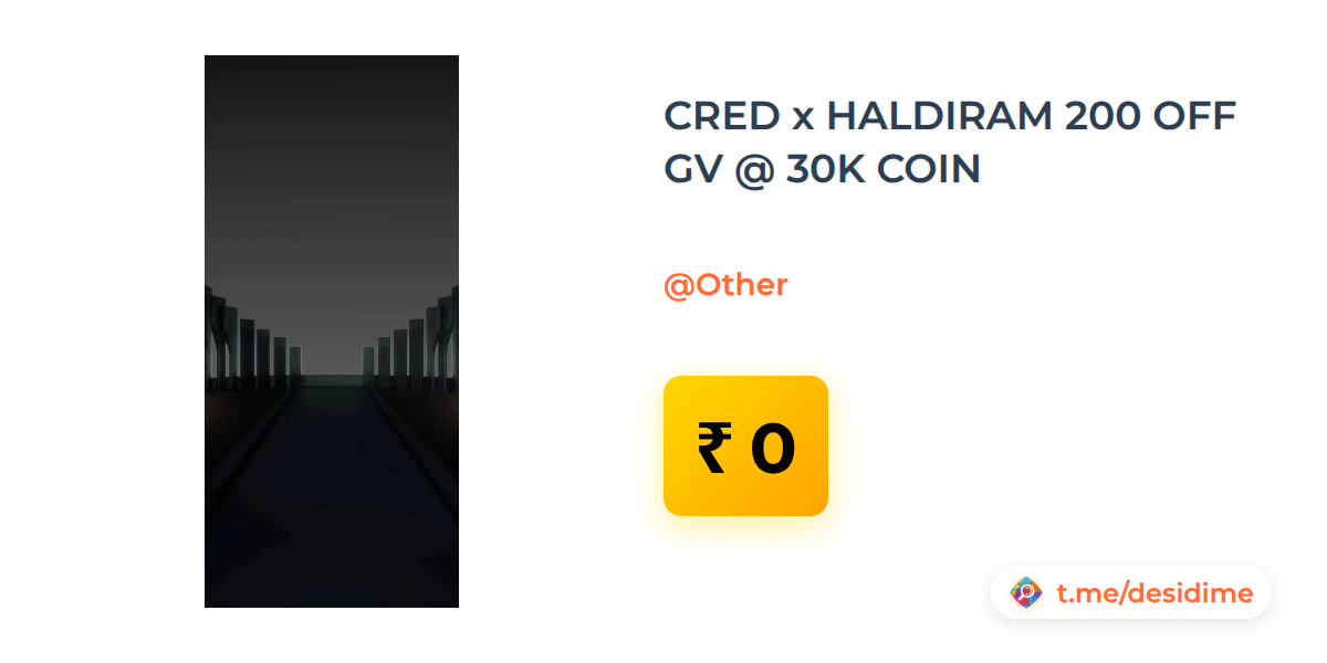 CRED x HALDIRAM 200 OFF GV @ 30K COIN - Rs. 0