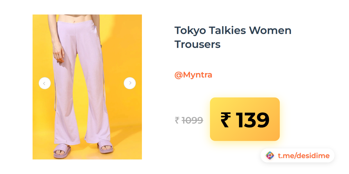 87% off on - Tokyo Talkies Women Trousers - Rs. 139